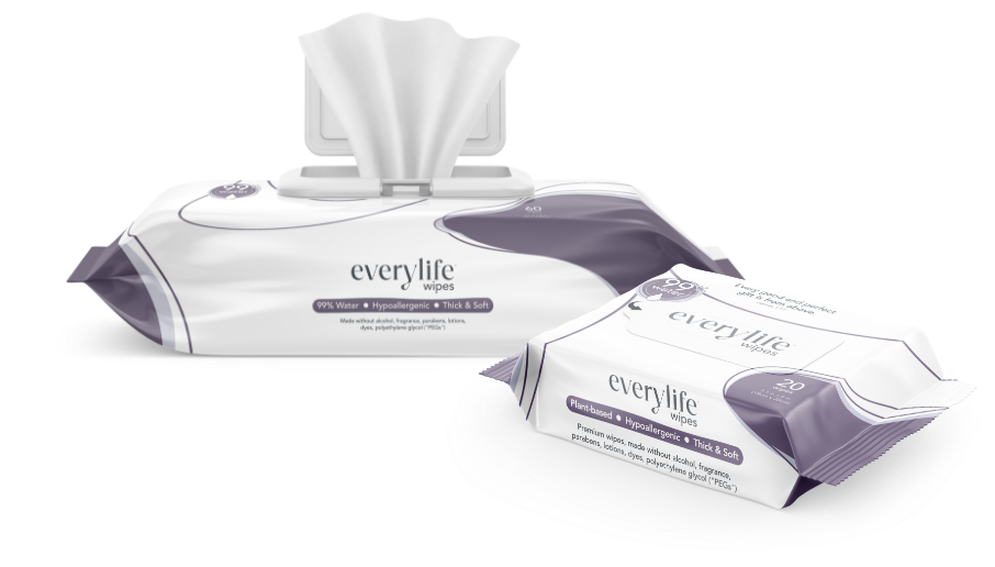 Our premium plant-based wipes are made from 99% purified water + 1% premium skincare ingredients known to help baby’s skin thrive.